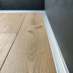 Товщина алюмінієвого плінтуса дозволяє перекрити технічний шов між стіною і покриттям підлоги. На сьогодні затребуваний і популярний вид підлогового плінтуса. Монтується на клей.